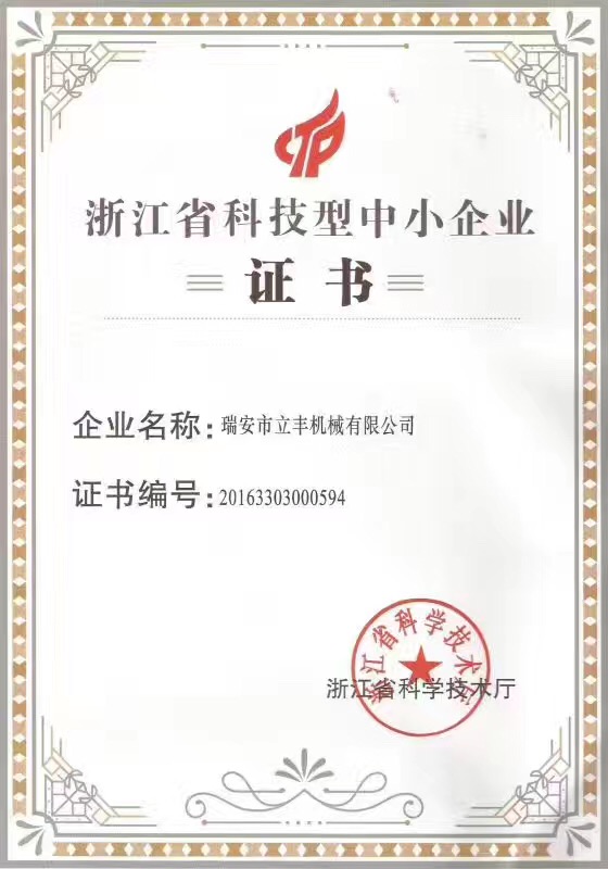 立豐機械被評為“浙江省科技型中小... 2017-06-17 熱烈慶祝瑞安市立豐機械有限公司被...